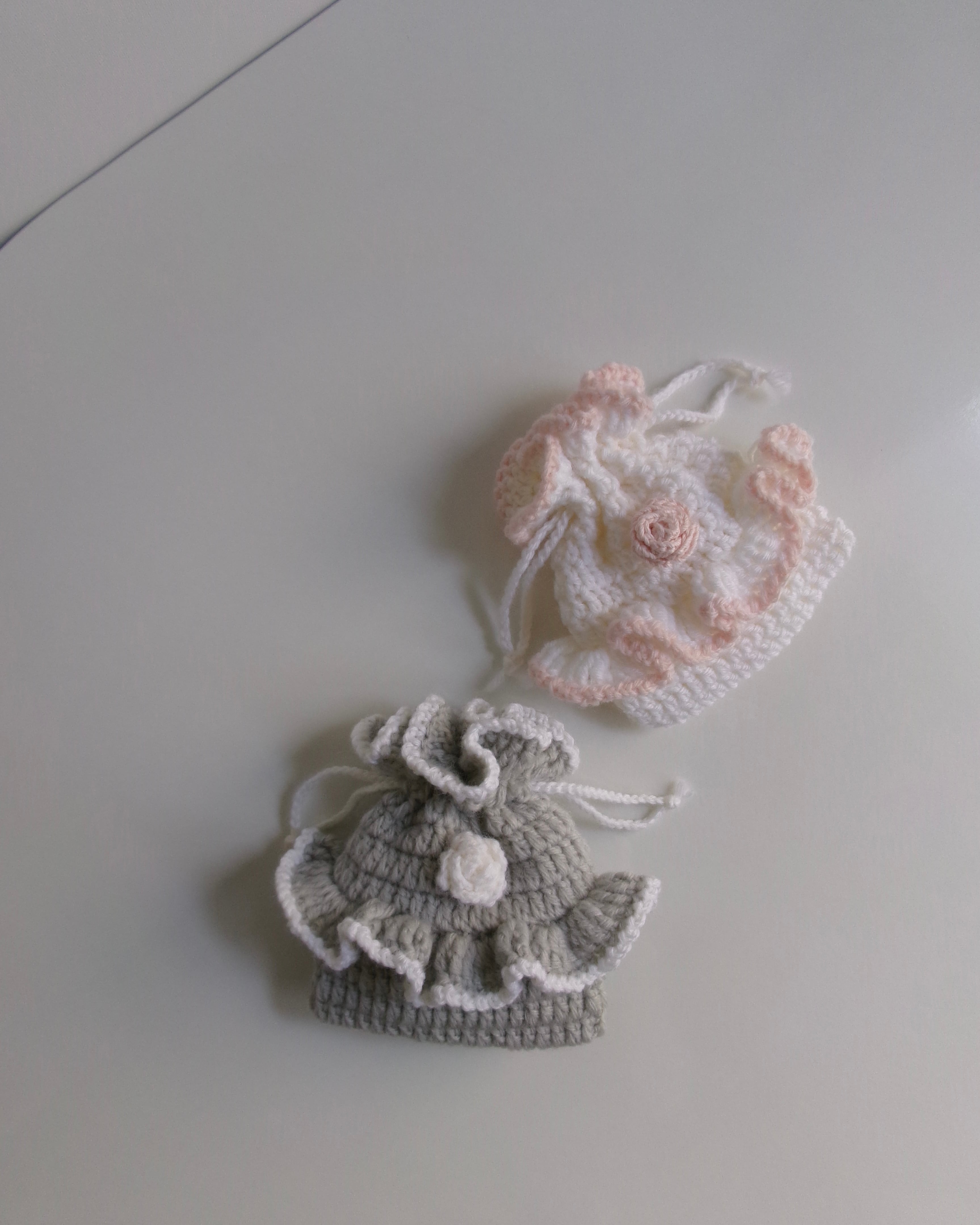 バラと大きめのフリルが可愛い巾着袋です。