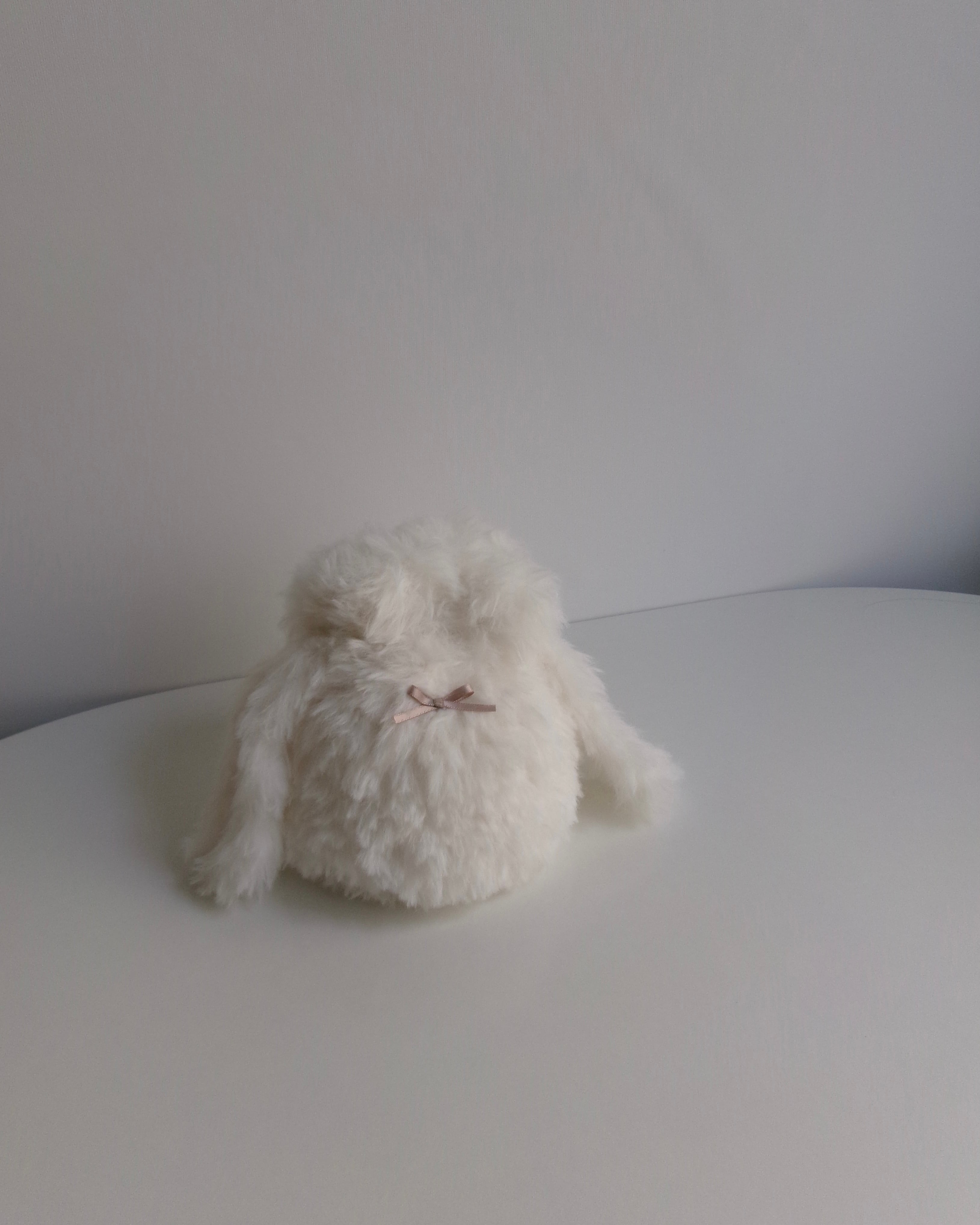 底も形もまるい可愛い巾着袋です。